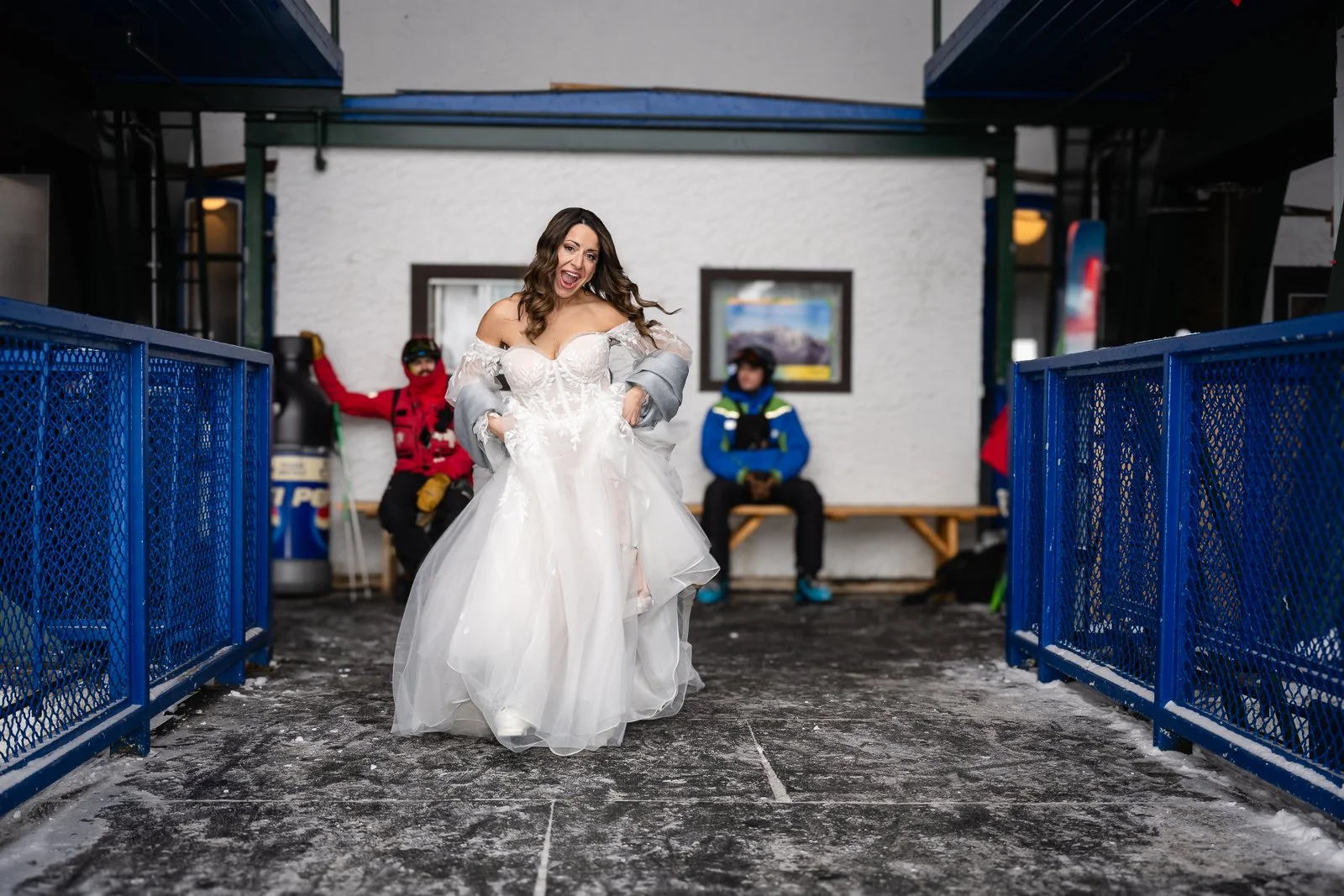 A snowy wedding backdrop is like a dream come true for a team of photographers like us, so we loaded up on coffee and snacks and moseyed on over to the mountain, bringing not just our normal barrage of photo equipment but our thickest Gore-Tex layers taboot.